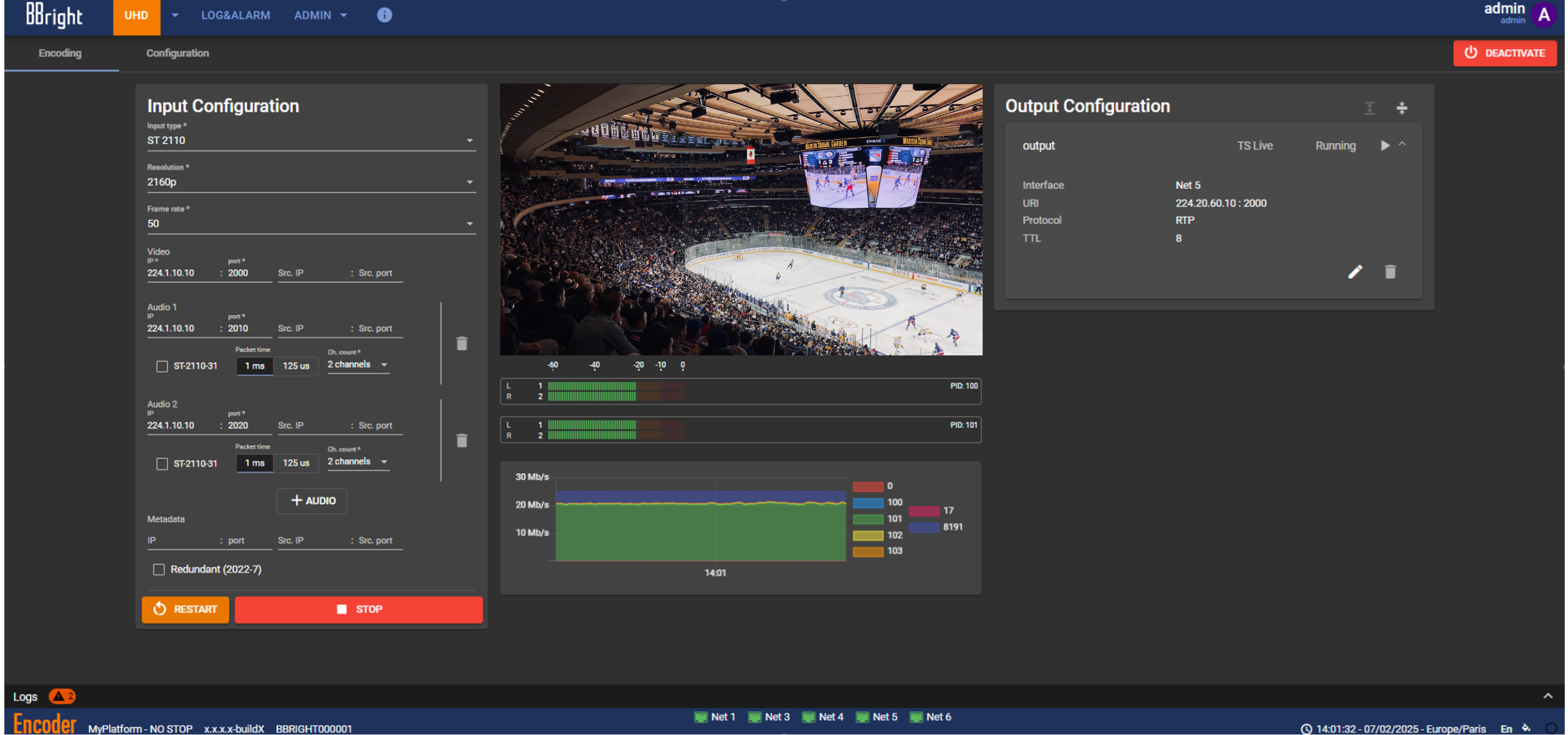 Disponible sous forme d’appliance, le BBright Encoder ST 2110 s’intègre facilement dans des infrastructures hybrides et propose une supervision complète via API REST.
