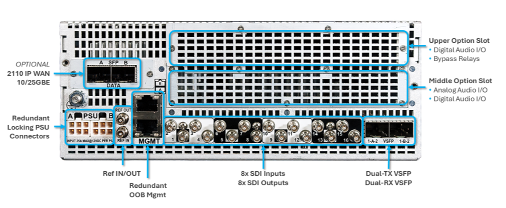 • Entrées et sorties SDI et 12GSDI pour chaque programme – avec fonctionnalité IP/2110 en option