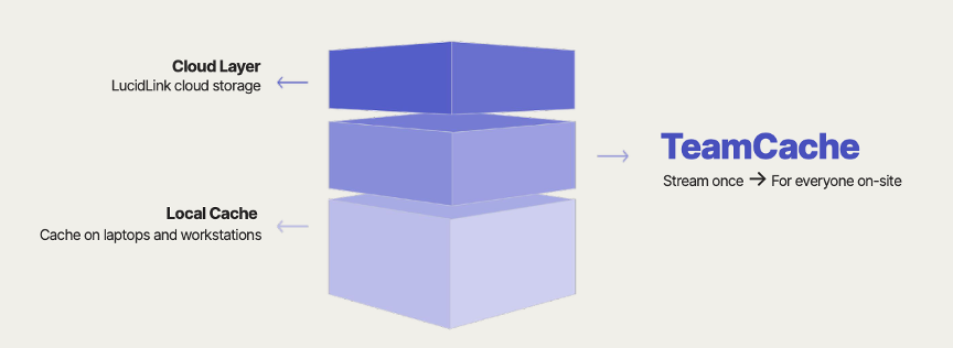 TeamCache fonctionne comme un cache distribué de niveau 2 (L2), intégré nativement à LucidLink :